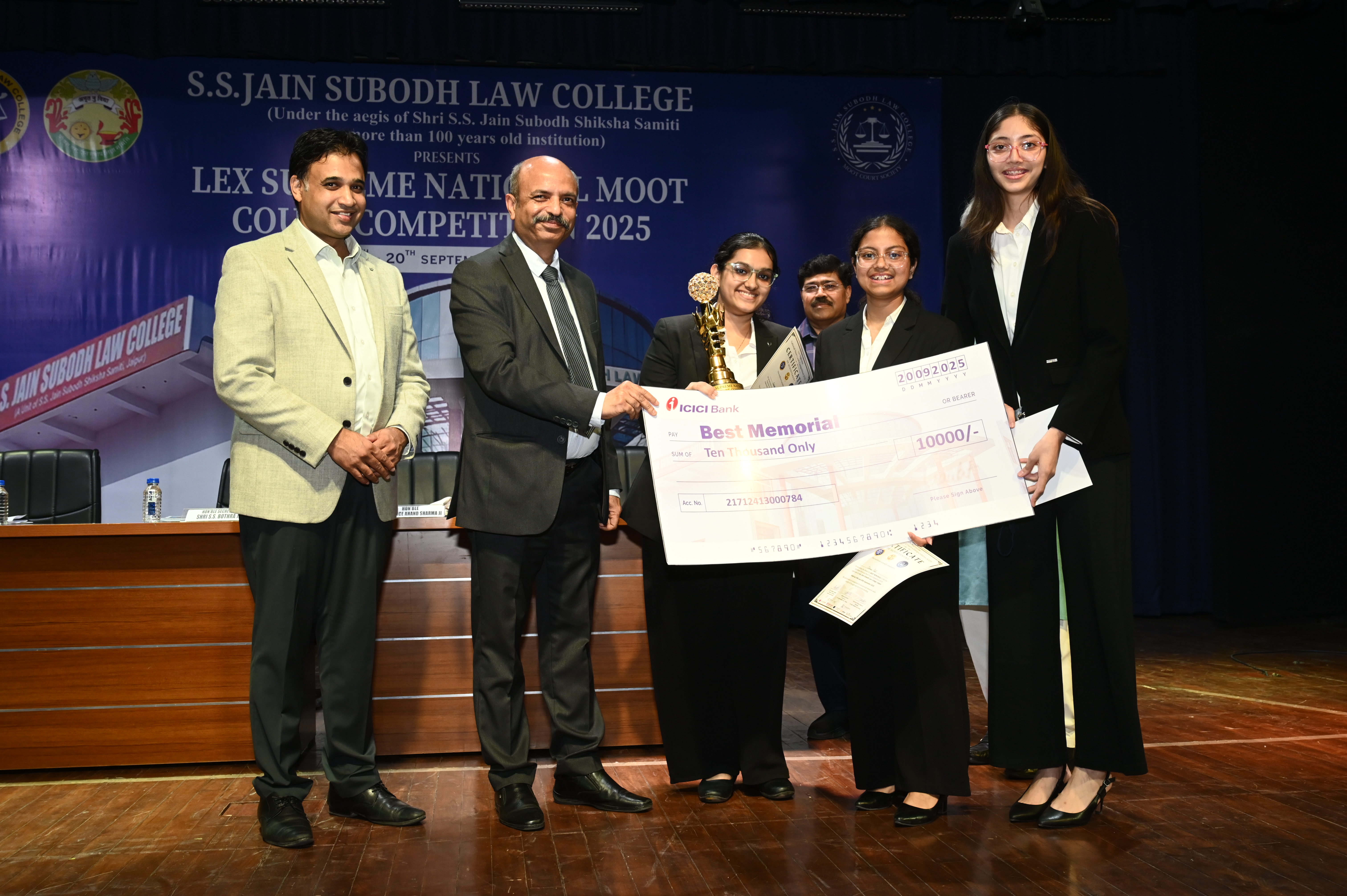 The Lex Supreme National Moot Court Competition 2025, held on 19th–20th September 2025, was a prestigious academic event that brought together 50 teams from across India on a common platform of legal excellence and advocacy. The competition witnessed enthusiastic participation from law students representing diverse institutions, fostering a spirit of healthy competition and intellectual exchange.